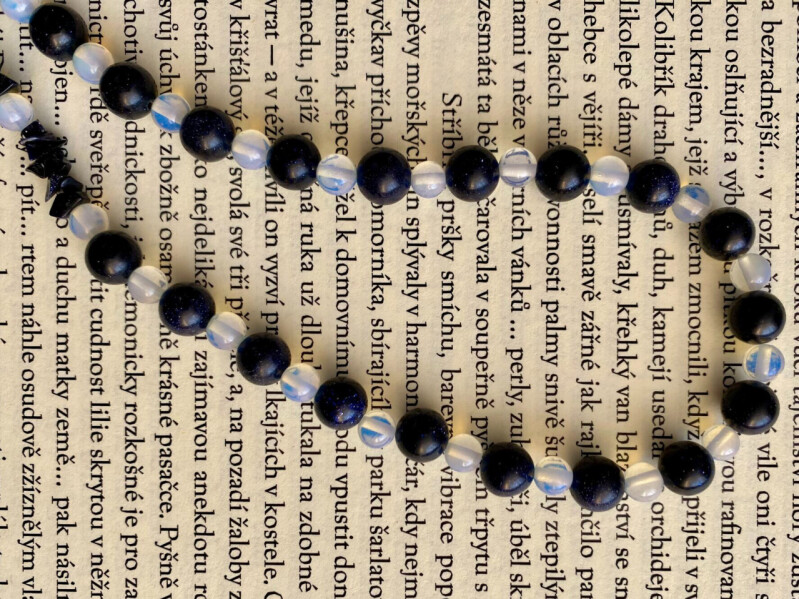 Náhrdelník z modrého avanturínu a opalitu pro duchovní rozvoj. Délka 45 cm
